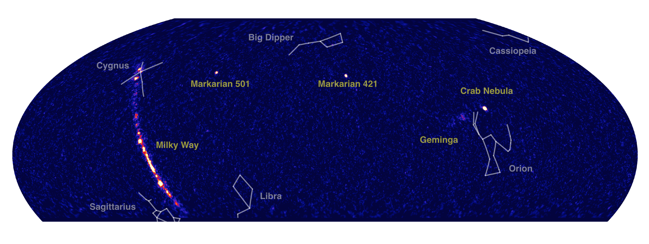 - Abstract: HAWC is a second generation ground detector searching for in TeV gamma-rays. HAWC is special because of its instantaneous very wide field of view (2 steradians, similar to a human eye) and because it operated continuously. This makes HAWC an ideal survey detector and complements point/dark time only operation of more sensitive air Cherenkov telescopes such as VERITAS. In its first 17 month of operation HAWC has detected ~40 sources, mostly in our own galaxy, including pulsar wind nebula, supernova remnants, unidentified objects, etc. In this colloquium I’ll discuss initial HAWC results as well as a search for counterpart TeV gamma-ray objects responsible for IceCube’s neutrinos.