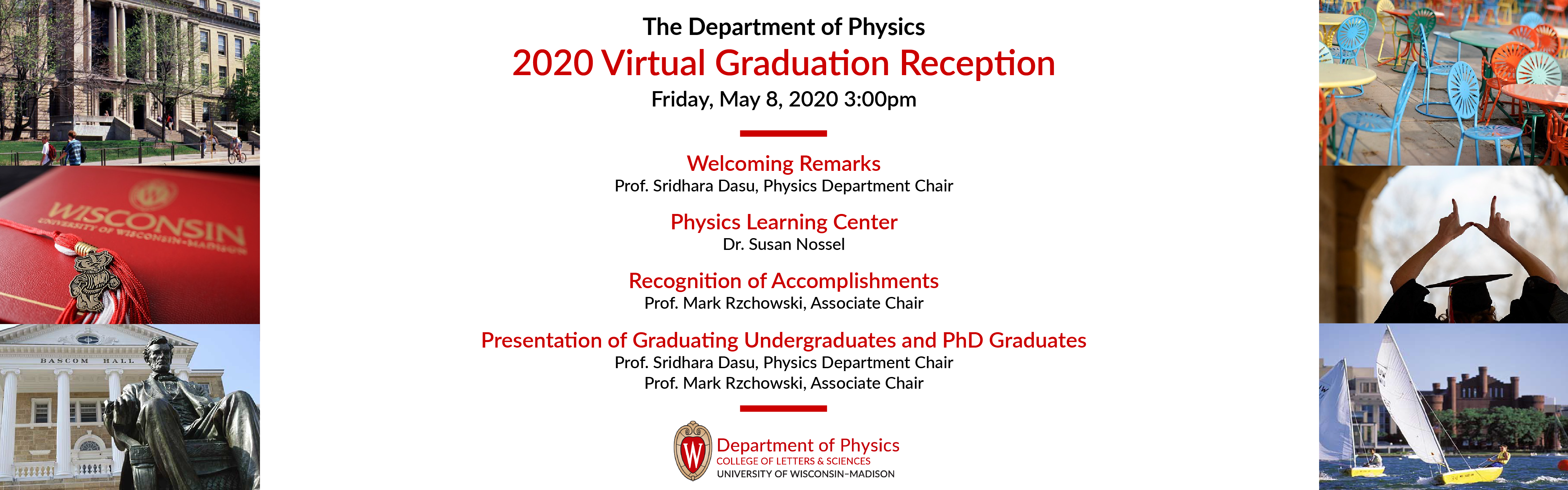 - Abstract: Please join us for a live virtual Commencement ceremony for undergraduate Physics and AMEP majors and Physics PhDs. For more info and a list of graduates, please visit
